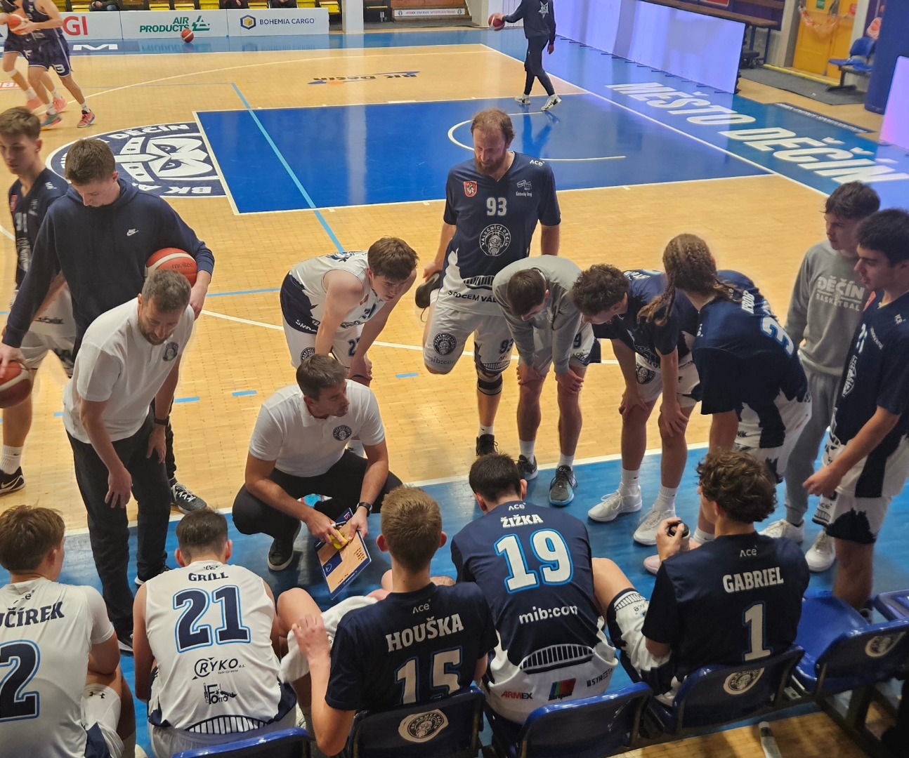Válečníci Děčín – BK Lokomotiva Plzeň 91-77 (Gabriel 20, Houška 14 – Sertič 13, Výcha 13)